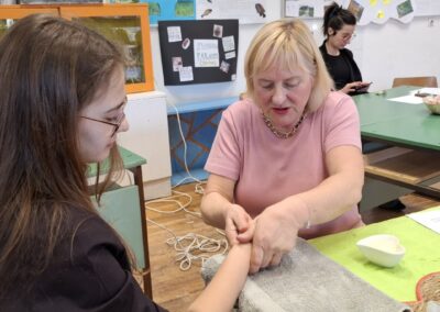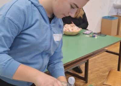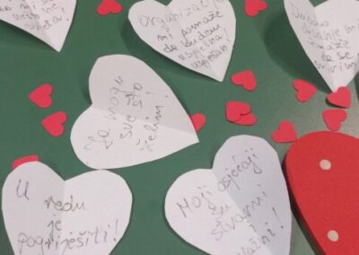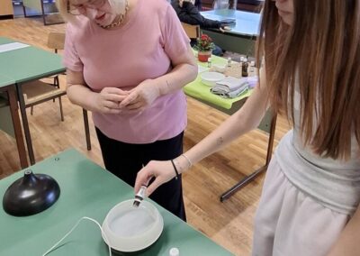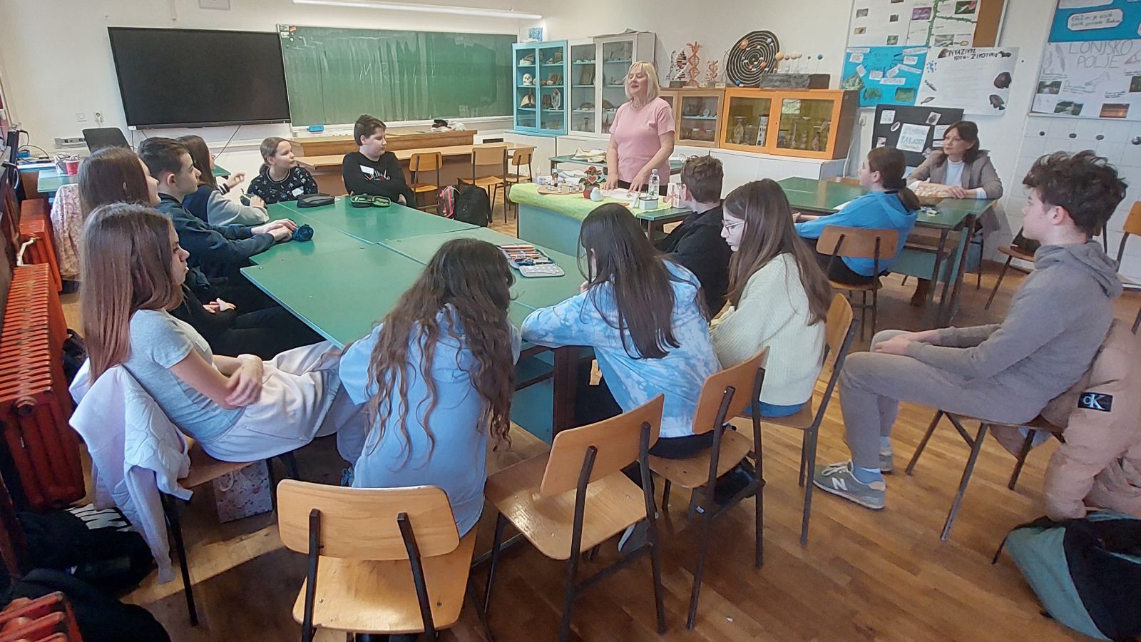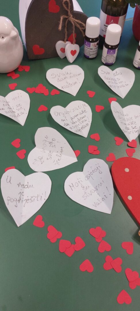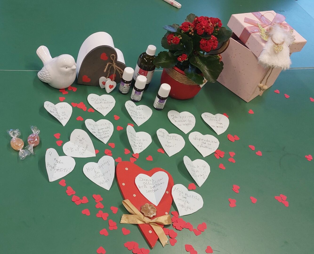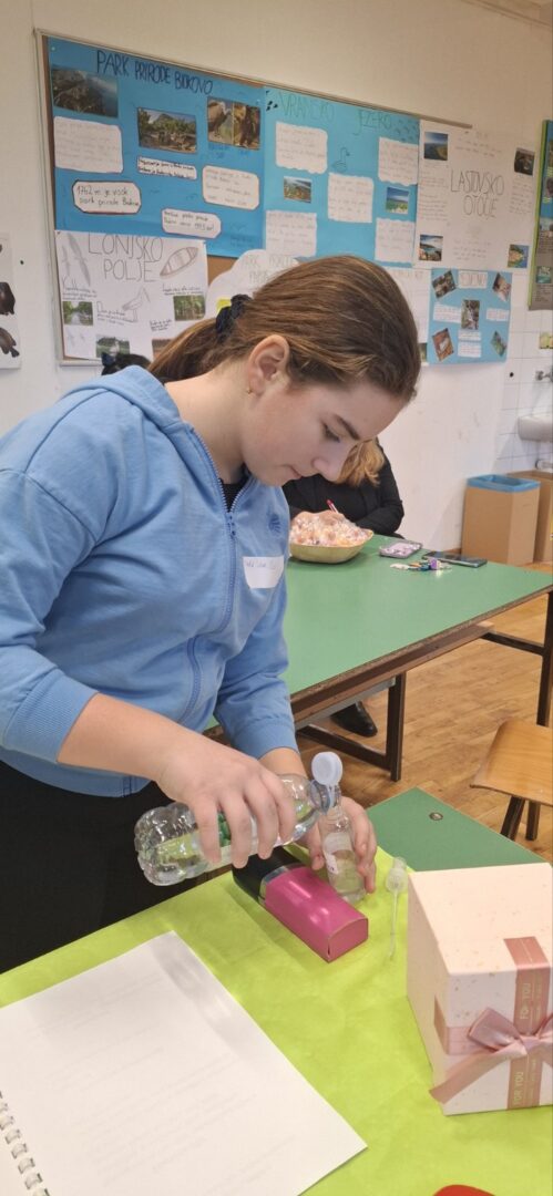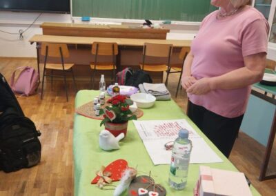 Povodom Valentinova u učionici biologije je zavladao poseban, mirisan ugođaj. Na poziv voditeljice učeničke zadruge Mrav, u goste nam je došla aromaterapeutkinja u mirovini, gospođa Emica Tudić, koja je za učenike zadrugare od 5. do 8. razreda održala zanimljivu i edukativnu radionicu o svijetu eteričnih ulja pod nazivom „Mirisna terapija“. U duhu Valentinova, razgovarali smo o tome kako mirisi mogu utjecati na naše raspoloženje, emocije i opće blagostanje. Saznali smo što su eterična ulja, kako se dobivaju, na koji način ih treba pravilno čuvati te kako ih sigurno koristiti u svakodnevnom životu. Posebno nas je razveselilo otkrivanje djelovanja pojedinih eteričnih ulja: naranča za sreću i veselje, limun za umor i manjak energije, bergamot za ublažavanje straha od javnog nastupa, a lavanda i kamilica za smirenje i lakši san. Naučili smo da se eterična ulja mogu koristiti na različite načine, ali uvijek u malim količinama i razrijeđena – za inhalaciju, za masažu, kao oblozi, u kupkama ili za osvježavanje prostora. Uz asistenciju učenika, gospođa Emica demonstrirala je izradu prirodnog spreja za osvježavanje zraka, pripremu obloga koji mogu pomoći kod manjih ozljeda (npr. kad padnemo s bicikla) te je pokazala tehniku opuštajuće masaže šake. Na kraju radionice, svi su učenici (i učiteljice) dobili motivacijske poruke u obliku srca. Ovo mirisno valentinovsko druženje podsjetilo nas je koliko nam je malo potrebno da probudimo pozitivne osjećaje u sebi i osjećamo se dobro. Zahvaljujemo gospođi Emici na toploj i inspirativnoj radionici te se nadamo da će nas posjetiti još puno puta i nastaviti dijeliti svoje znanje, mudrost i pozitivnu energiju.