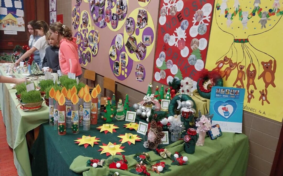 Na prodajnom štandu bili su izloženi kreativni i maštoviti radovi koje su učenici izrađivali uz pomoć svojih učitelja. Posebnu pažnju privukli su adventski vijenci, svijećnjaci, božićni ukrasi i prigodni aranžmani, izrađeni s puno truda i ljubavi. Blagdanski ugođaj dodatno je upotpunio lijepo uređen prostor i vesela atmosfera.