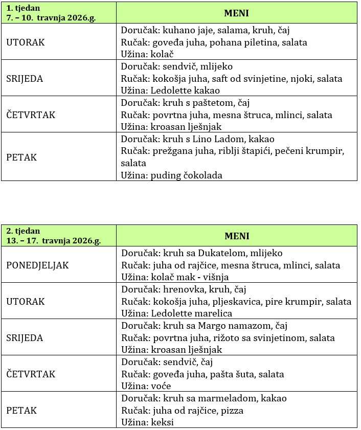 JELOVNIK – TRAVANJ 2026.