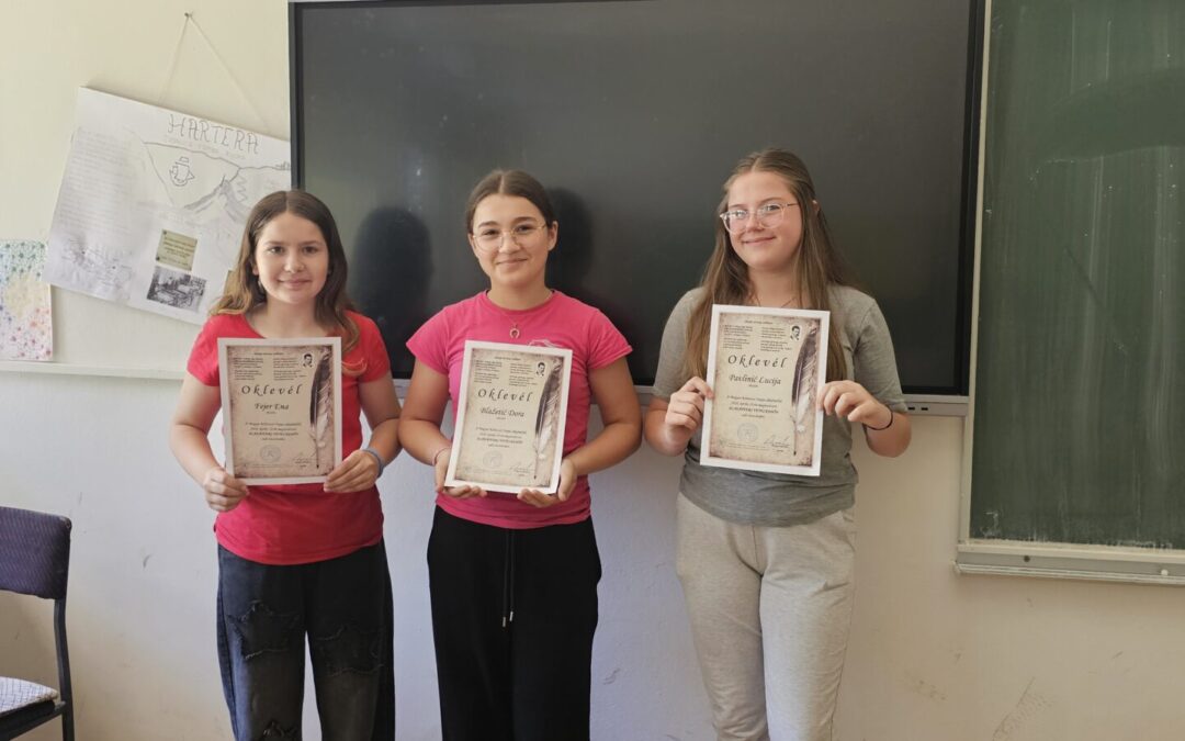 Učenici mađarskog jezika iz naše škole sudjelovali su u zanimljivom i kreativnom državnom natjecanju „Plakátvers vetélkedő“ (Poezija na plakatu), a mentorica im je bila nastavnica mađarskog jezika, Dolores Šolaja.