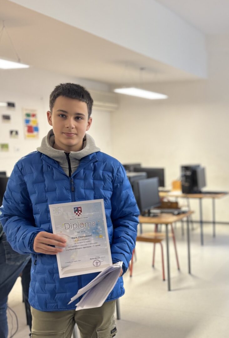 U kategoriji Primjena algoritama (7. razred) sudjelovao je Mark Chorvatovič (7.a), koji je osvojio drugo mjesto.