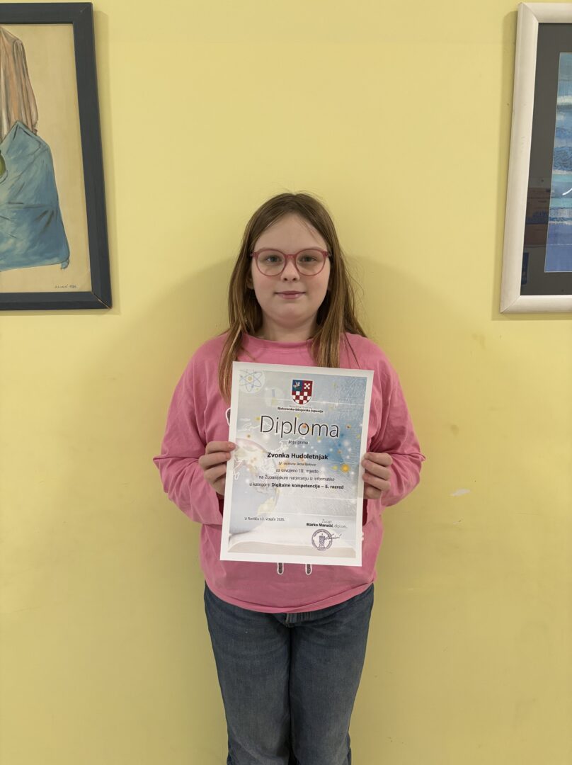 U kategoriji Digitalne kompetencije (5. razred) sudjelovala je učenica Zvonka Hudoletnjak (5.d), koja je osvojila treće mjesto.